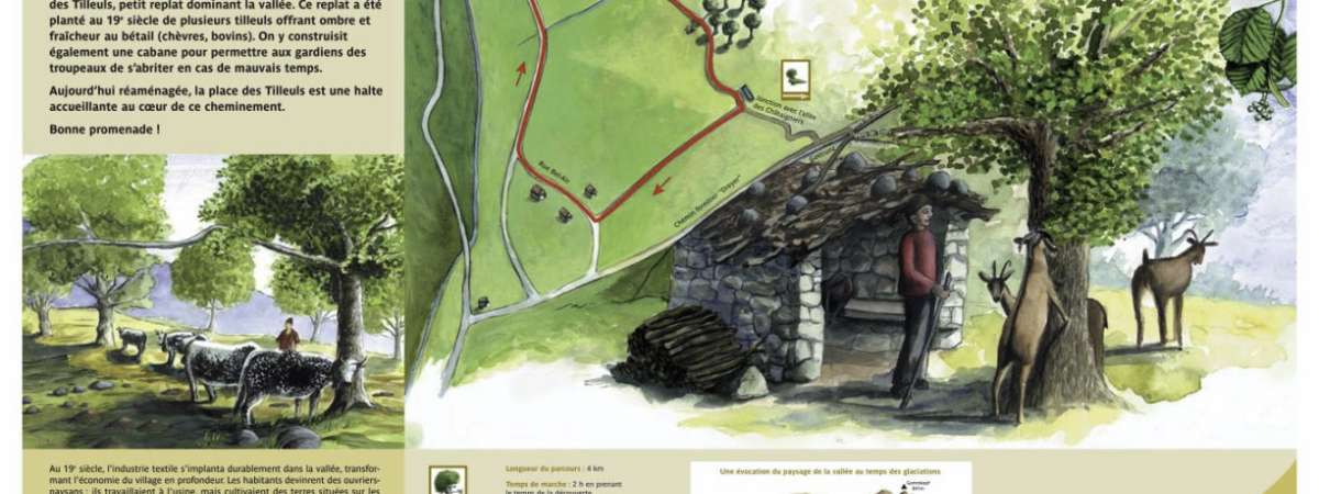 Ce parcours jalonné d’arbres remarquables, relie la place des tilleuls (Kialager) petit replat aménagé au 19ème siècle pour la quiétude du bétail, à l’allée des châtaigniers, plantée d’arbres séculaires.