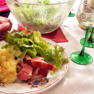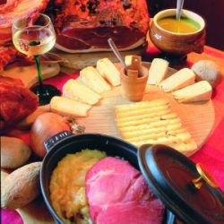 Aujourd’hui, le fameux repas marcaire est devenu le menu traditionnel servi dans les fermes-auberges. Il se compose d’un potage ou d’une tourte, de viande de porc fumée accompagnée des « roïgabrageldi », de fromage (Munster ou Bargkaas) et d’un dessert.